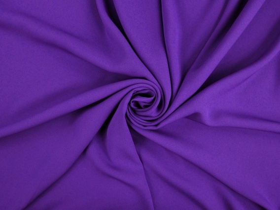 Włoska, grubsza krepa wiskozowa typu cady w nasyconym, wyjątkowym kolorze purpury wpadającej w fiolet. Lekko mięsista, dwustronna tkanina o powierzchni matowej i tępej z charakterystycznym dla krep lekko supełkowym splotem. Druga strona jest gładka i jednorodna oraz charakteryzuje się eleganckim, delikatnym połyskiem. Materiał ten umożliwia szycie na obydwie strony, a zaprojektowane kreacje nie wymagają podszewki. Krepa jest plastyczna, pięknie lejąca się oraz kryjąca. Dodatek acetatu zapewnia trwałość tkaniny oraz zwiększa odporność na zagniecenia. Wysokiej jakości cady, które doskonale sprawdzi się jako: