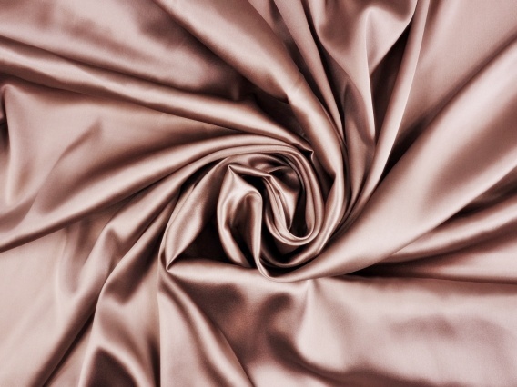 Włoska satyna jedwabna w kolorze brudnego, pudrowego różu z delikatnym dodatkiem beżu z oznaczeniem Alta Moda na krajce, które podkreśla wysoką jakość tkaniny. Powierzchnia tego luksusowego materiału jest satynowana, gładka i przyjemna w dotyku. Mięsista, włoska tkanina, lejąca się i pięknie łapiąca światło. Dzięki dodatkowi elastanu materiał jest plastyczny, dobrze pracuje oraz jest bardziej odporny na zagniecenia. Wysokogatunkowy jedwab, który doskonale sprawdzi się jako sukienka, spódnica, koszula, tunika, kimono, kombinezon lub luźne spodnie.
