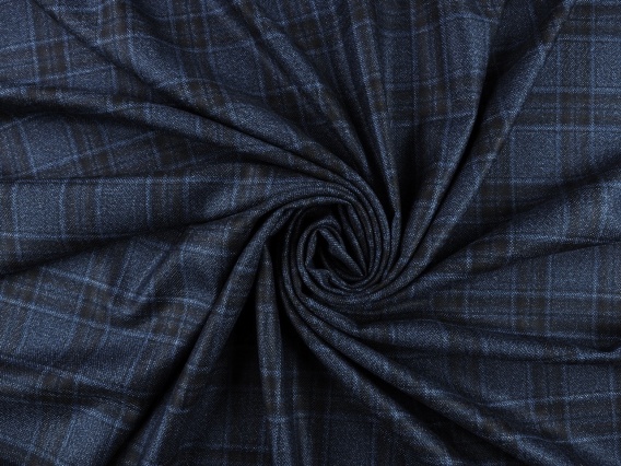Kaszmir garniturowy - Niebieska krata z brązem Loro Piana