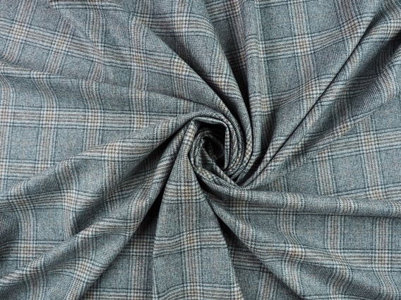 Włoska wełna kaszmirowa w kratę księcia Walii w spokojnym, szarym kolorze z brązowymi akcentami. Materiał powstał na potrzeby kultowej tkalni Loro Piana - słynącej z naturalnych tkanin najwyższej jakości. Naturalna tkanina o niezwykle przyjemnej i ciepłej w dotyku powierzchni z subtelnie wyczuwalnym, miłym meszkiem, który nadaje miękkości i poczucia luksusowego otulenia. Kaszmir garniturowy z wykończeniem w delikatnym półmacie. Lekki kaszmir o zwartym, gęstym i drobnym, diagonalnym splocie, który nadaje tkaninie sprężystości oraz zwiększa odporność na zagniecenia. Dość delikanty kaszmir, lekki i wiotki, który jest miękki w chwycie oraz oraz pięknie układa się na sylwetce. Kaszmir posiada doskonałe właściwości termoregulacyjne, gwarantując wysoki komfort noszenia. Propozycja dla osób ceniących eleganckie tkaniny najwyższej jakości, które nigdy nie wyjdą z mody. Może wymagać podklejenia przy niektórych projektach. Wspaniały kaszmir premium, który będzie zachwycał jako: