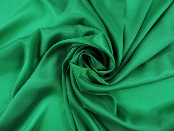Włoska podszewka elastyczna w nasyconym kolorze zielonym. Powierzchnia materiału jest gładka z miękkim połyskiem. Podszewka jest lekko śliska i przyjemna w dotyku. Miękka w chwycie, dobrze pracująca i elastyczna tkanina. Jako mieszanka acetatu, wiskozy i elastanu łączy zalety wszystkich surowców - świetnie się układa, jest wytrzymała i ulega mniejszym zagnieceniom, a przy tym jest oddychająca i komfortowa w noszeniu. Uniwersalna podszewka przeznaczona pod:
