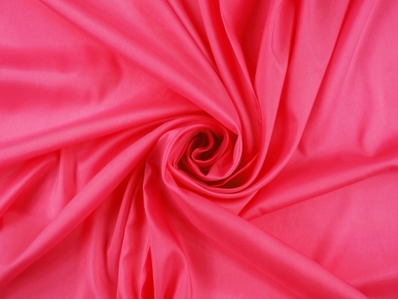 Włoska podszewka elastyczna w nasyconym kolorze różowym w cukierkowym odcieniu. Powierzchnia materiału jest gładka z miękkim połyskiem. Podszewka jest lekko śliska i przyjemna w dotyku. Miękka w chwycie, dobrze pracująca i elastyczna tkanina. Jako mieszanka acetatu, wiskozy i elastanu łączy zalety wszystkich surowców - świetnie się układa, jest wytrzymała i ulega mniejszym zagnieceniom, a przy tym jest oddychająca i komfortowa w noszeniu. Uniwersalna podszewka przeznaczona pod: