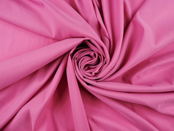 Włoska podszewka elastyczna w kolorze różowym w lekko wrzosowym odcieniu. Powierzchnia materiału o drobnym splocie diagonalnym z delikatnym, miękkim połyskiem. Podszewka jest lekko tępa i przyjemna w dotyku. Miękka w chwycie, dobrze pracująca i elastyczna tkanina. Jako mieszanka acetatu, wiskozy i elastanu łączy zalety wszystkich surowców - świetnie się układa, jest wytrzymała i ulega mniejszym zagnieceniom, a przy tym jest oddychająca i komfortowa w noszeniu. Uniwersalna podszewka przeznaczona pod: