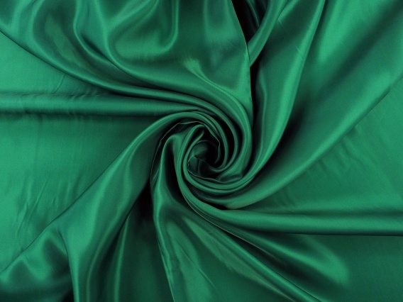 Włoska podszewka wiskozowa w kolorze zielonym w leśnym odcieniu. Powierzchnia tego materiału podszewkowego jest jednorodna, lśniąca, chłodna i śliska w dotyku. Cienka podszewkowa tkanina wiskozowa, która ma gęsty, drobny, diagonalny splot i jest miękka w chwycie. Szczególnie dobrze nadaje się na podszewkę w: