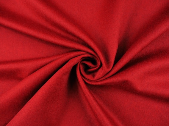 Najwyższej jakości, dwustronna, płaszczowa, włoska wełna jagnięca z kaszmirem. Ciepła tkanina w kolorze głębokiej czerwieni po jednej stronie i ciemnym, granatowym po drugiej. Materiał powstał na potrzeby kultowej tkalni Loro Piana - słynącej z naturalnych tkanin klasy premium. Luksusowa tkanina wykonana ze szlachetnego kaszmiru oraz wełny jagnięcej, która charakteryzuje się większą delikatnością oraz lekkością w porównaniu do tradycyjnej wełny. Podwójny materiał, który ze względu na swoją specyfikę pozwala uszyć płaszcz lub ponczo bez podszewki. Daje także możliwość wykonania szwów nakładanych znanych z projektów Max Mara. Wełna o zwartym, drobnym, diagonalnym splocie, który nadaje tkaninie wytrzymałości oraz zwiększa odporność na zagniecenia. Powierzchnia materiału z obydwu stron jest przyjemna i ciepła w dotyku, bez wyraźnego włoska - z wyczuwalnym, miękkim meszkiem. Dodatek kaszmiru zapewnia szlachetne wykończenie w półmacie z subtelnym i miękkim połyskiem. Tkanina płaszczowa, która jest lekko mięsista, zwarta oraz miękko się układa. Naturalna wełna gwarantuje doskonałe właściwości termoregulacyjne i zapewnia komfort noszenia. Wspaniała tkanina premium, doskonała na wszelkiego rodzaju eleganckie okrycia wierzchnie, jesienno-zimowe typu: