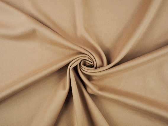 Najwyższej jakości płaszczowa, włoska wełna z kaszmirem w eleganckim kolorze klasycznego beżu. Powierzchnia materiału jest przyjemna, delikatna i ciepła w dotyku, z lekko wyczuwalnym, miękkim włoskiem. Dodatek kaszmiru zapewnia szlachetne wykończenie w półmacie z subtelnym i miękkim połyskiem. Wełna o zwartym, diagonalnym splocie, który nadaje tkaninie wytrzymałości oraz zwiększa odporność na zagniecenia. Niezbyt gruba tkanina wełniana jest lekko mięsista, zwarta, dobrze się układa oraz jest miękka w chwycie. Naturalna wełna wraz ze szlachetnym kaszmirem gwarantują doskonałe właściwości termoregulacyjne i zapewniają komfort noszenia. Ciepła tkanina premium z kaszmirem, która jest doskonała na wszelkiego rodzaju okrycia wierzchnie, jesienno-zimowe typu:
